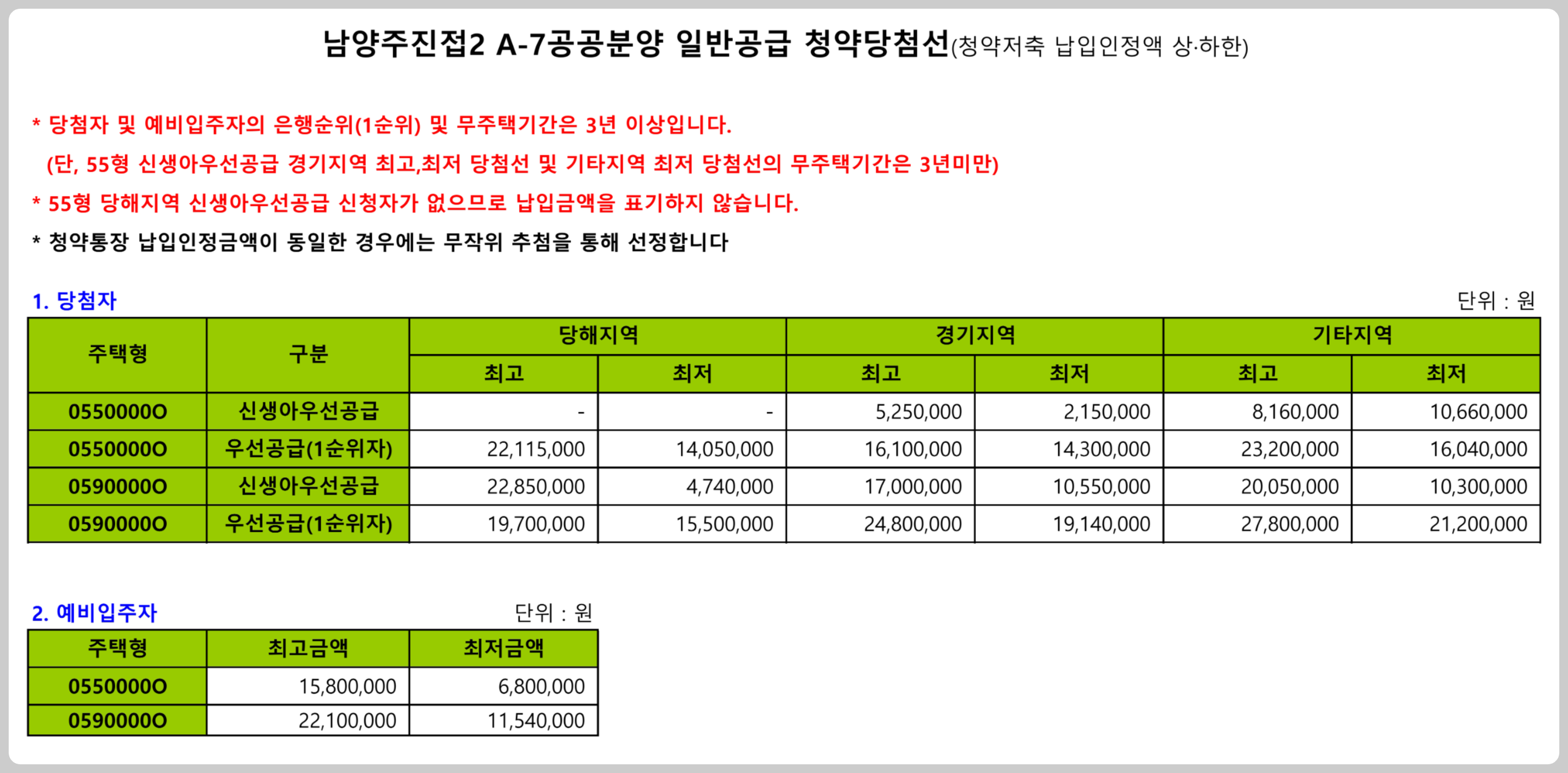 청약통장 인정금액 당첨선입니다. 참고만 하세요. 세대수와 위치,분양가 감안해 보세요.