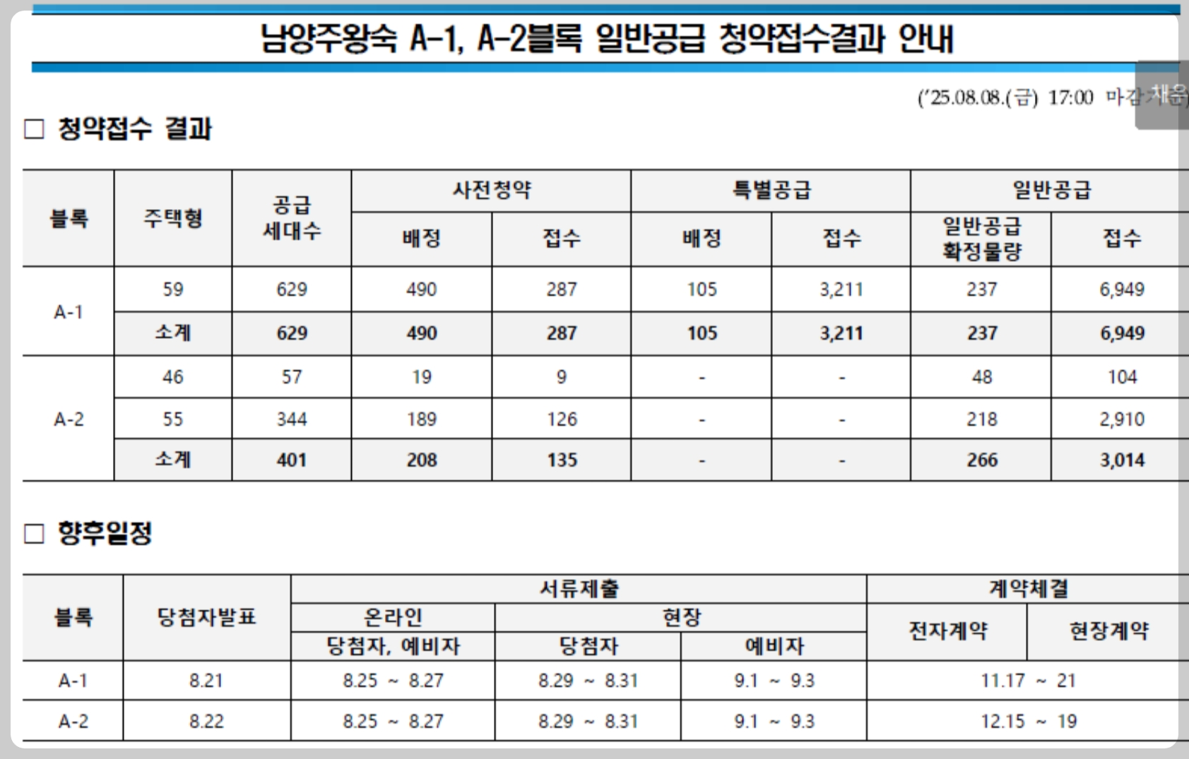 앞서 분양했던 아파트 경쟁율 입니다. 왕숙과 진접2는 사실상 한몸,같은 동네입니다.
